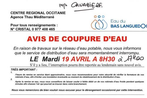 une coupure d’eau est prévue mardi 19 avril – Impasse de la Canabière