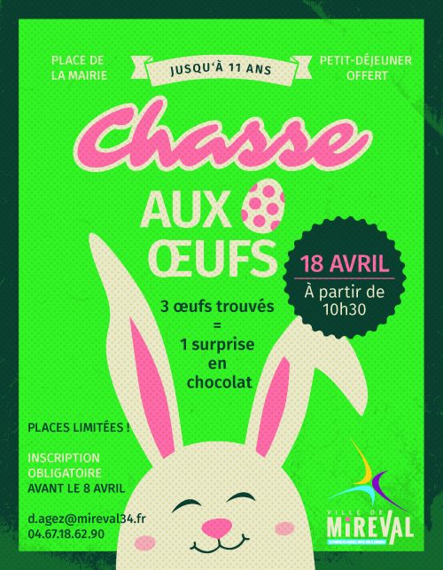 La municipalité organise la chasse aux œufs au centre du village pour les enfants. Si tu as moins de 11 ans, inscris toi vite, les places sont limitées.