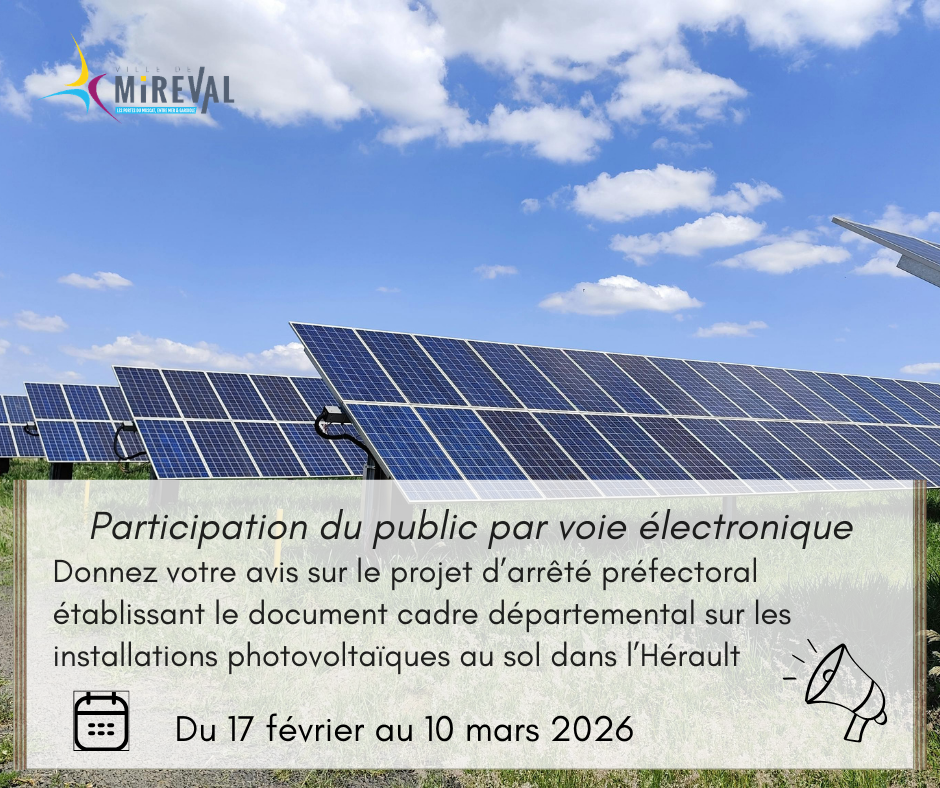 Consultation public - projet d’arrêté préfectoral établissant le document cadre départemental sur les installations photovoltaïques au sol dans l’Hérault