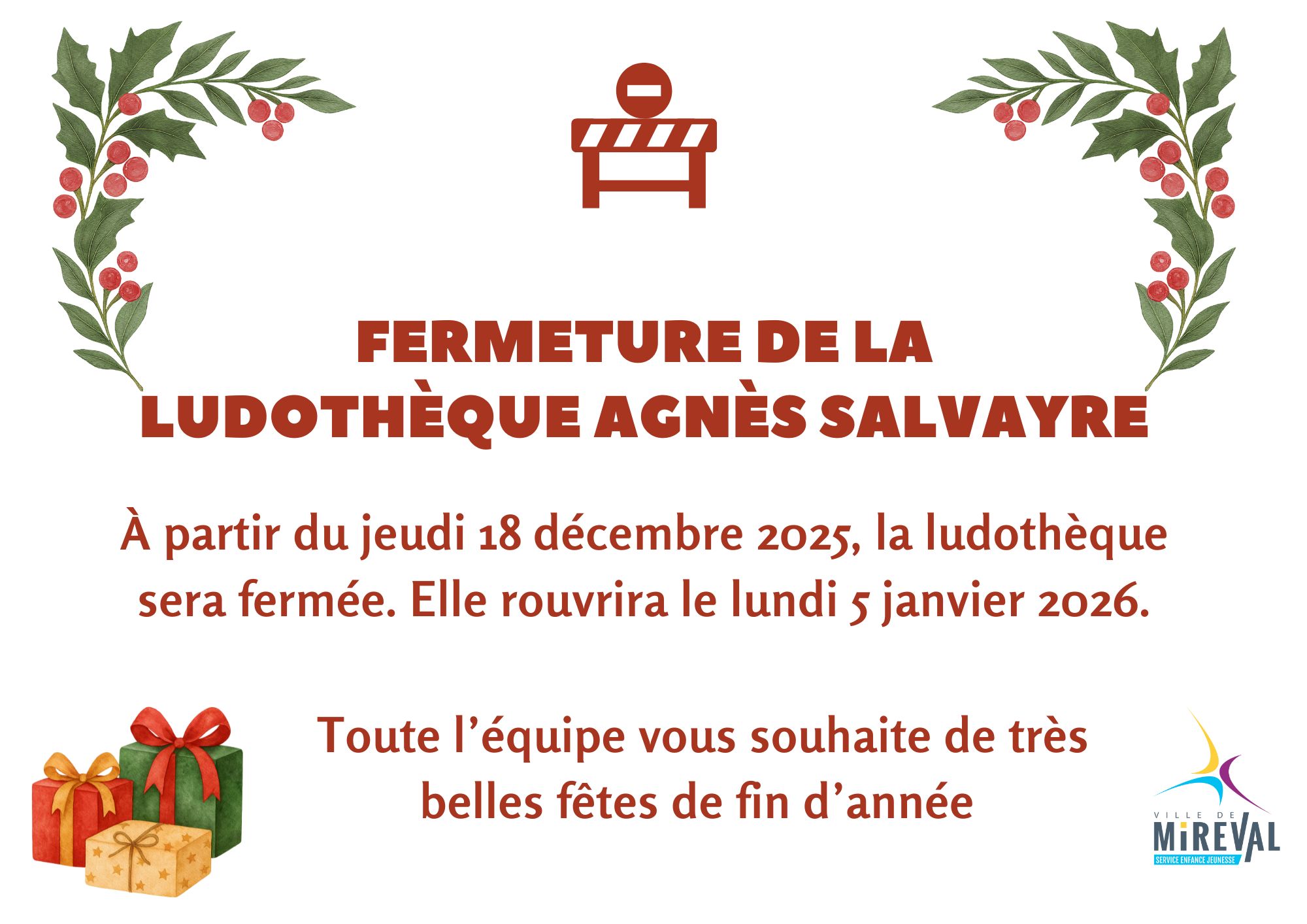 Pour permettre à son équipe de souffler et de préparer de nouvelles animations pour 2026, la ludothèque Agnès Salvayre fermera ses portes du jeudi 18 décembre 2025 au dimanche 4 janvier 2026 inclus. Elle rouvrira lundi 5 janvier 2026 avec, au programme, des jeux des surprises pour petits et grands !
