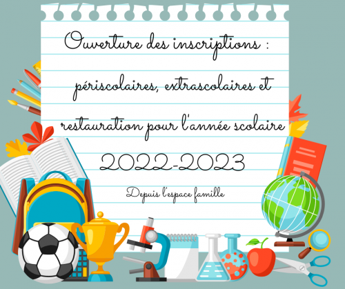 Les réservations ont démarré sur l’espace famille pour les temps périscolaires, extrascolaires et la restauration pour l’année scolaire 2022-2023.