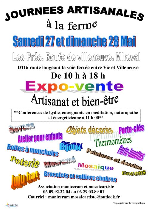 Journées artisanales – 27 et 28 mai 2023 – de 10h à 18h