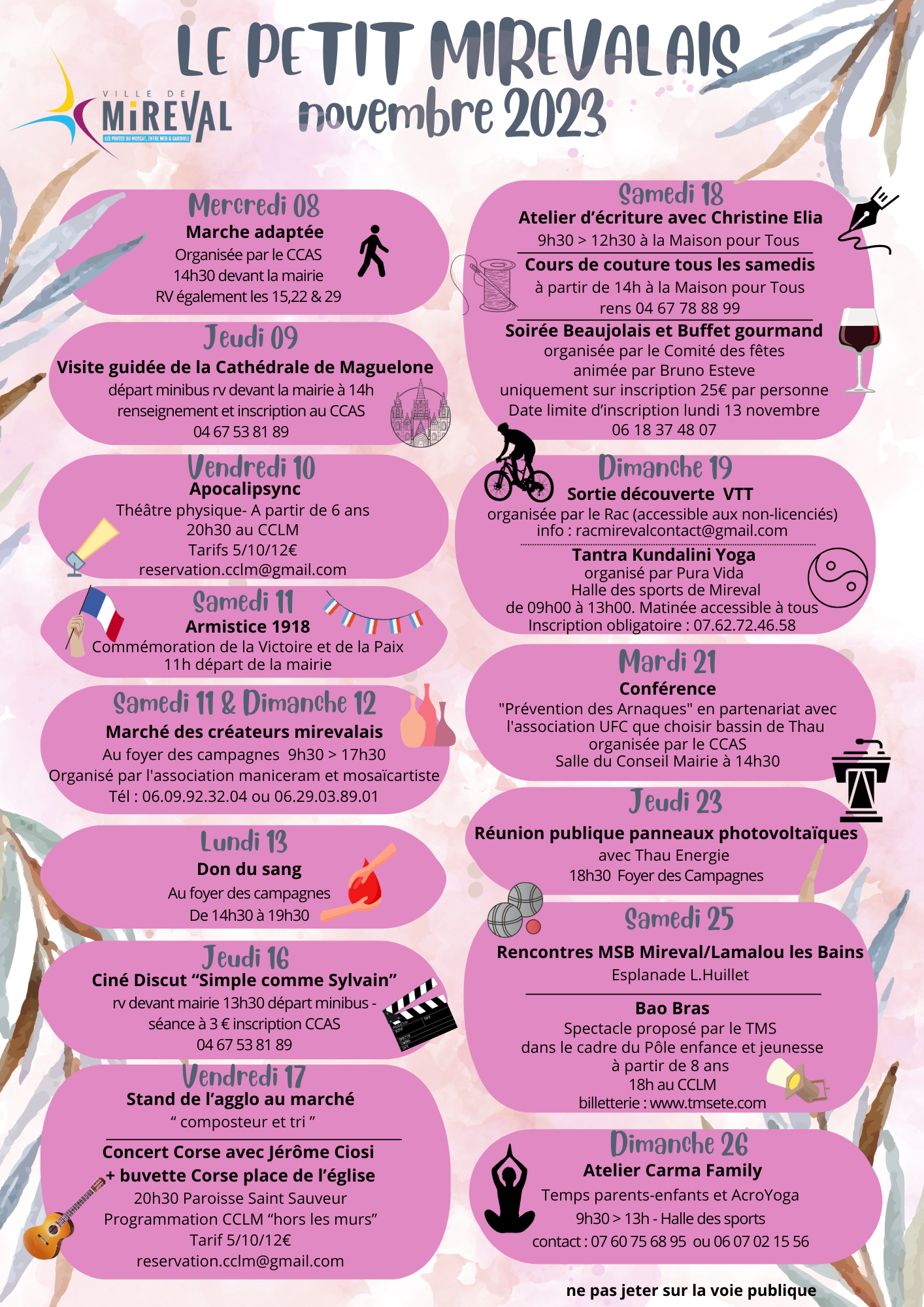 Celui-ci regroupe les évènements prévus pour les mois de Novembre.