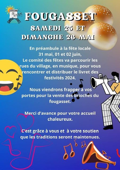 Le Comité des fêtes déambulera avec un camion samedi 25 et dimanche 26 juindans les rues de la communeen proposant à la vente des brioches pour contribuer au financement de la fête locale.
