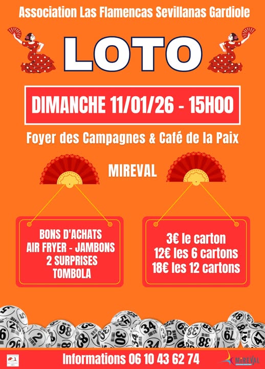 Pour bien commencer la nouvelle année, l'association Las Flamencas Sevillanas Gardiole vous propose le premier LOTO annuel