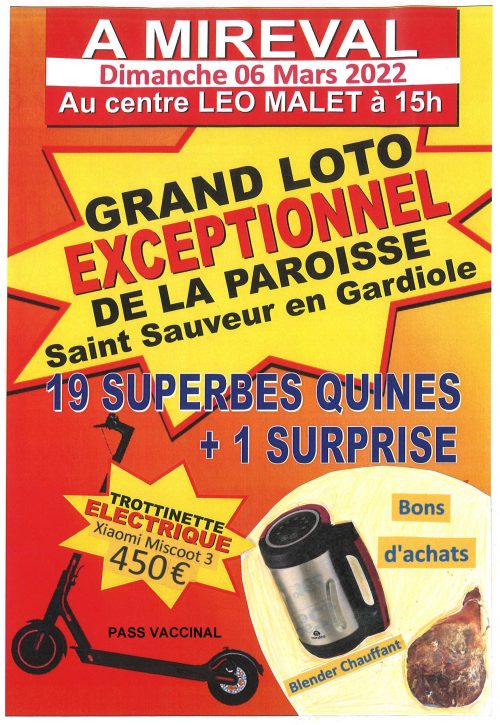 La paroisse Saint Sauveur de la Gardiole organise un grand LOTO