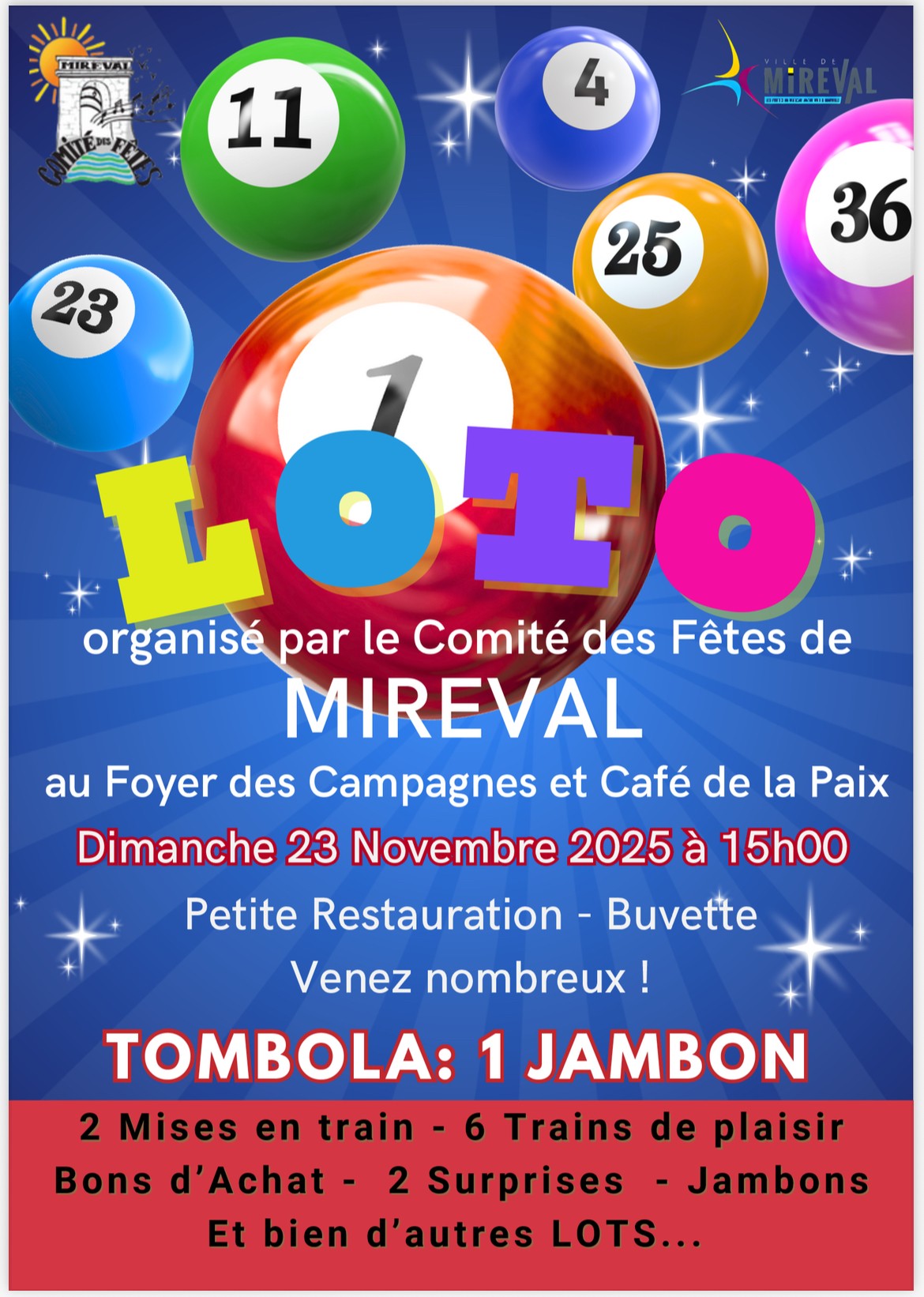 Rendez-vous au foyer des campagnes ou café de la Paix ce dimanche 23 novembre 2025 début du LOTO à 15h.