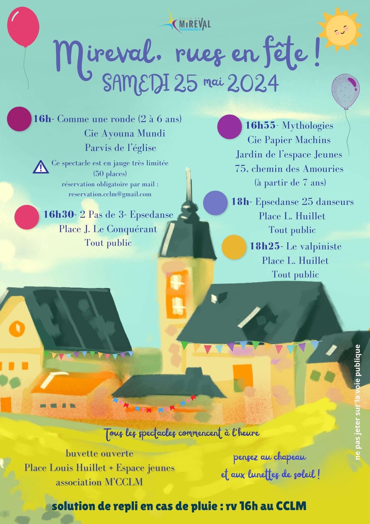 Et c’est parti pour une quatrième édition de ce petit festival d’art de la rue, proposé dans les jolies rues et places de notre beau village ! Rendez-vous dès 16h et laissez vous guider jusqu’à 19h30! Danse, Théâtre, Théâtre d’objets, Cirque seront au rendez-vous.