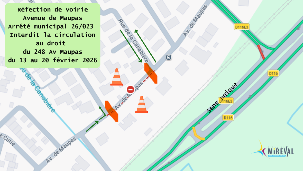Fermeture partielle d'une portion de l'avenue de Maupas au droit du n°248 du 13 au 20 février 2026.