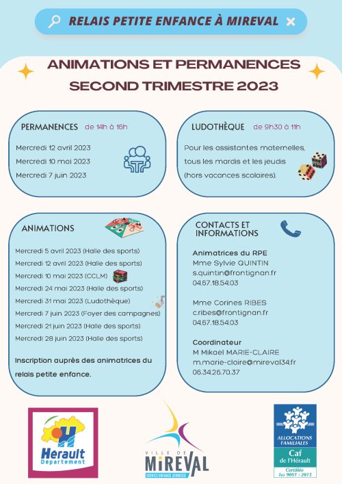 Relais Petite Enfance – Planning permanences et animations 2ème trimestre 2023