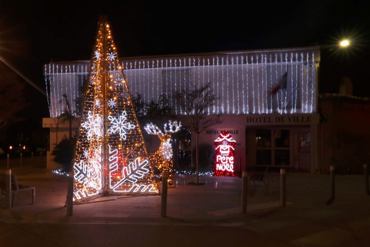 Aux approches de 18 heures, le décompte fut lancé par Monsieur Le Maire pour l’embellissement de la façade de l’hôtel de Ville et de son parvis. Les enfants ont ensuite appelé le Père Noël en chantant en levant les yeux dans les hauteurs. Il est apparut pour le plaisir de tous, en compagnie de Mickey et Minnie à un balcon de la place du village.