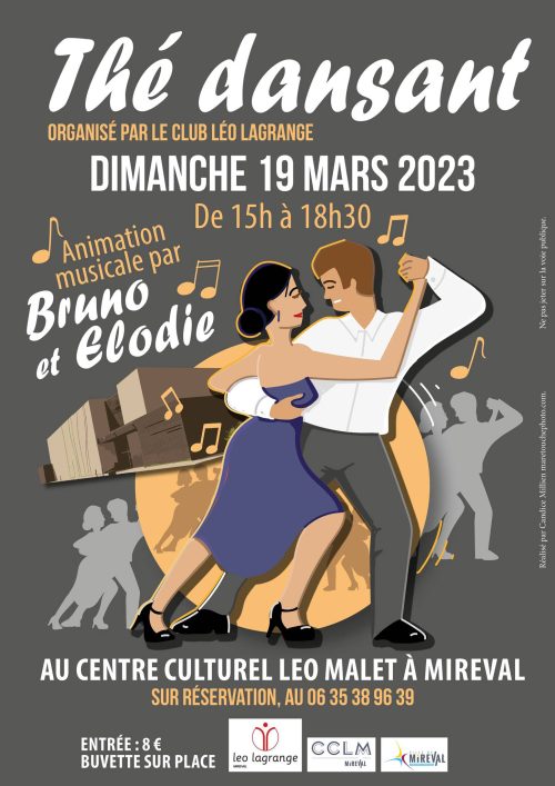 L’association Léo Lagrange vous donne rendez-vous pour le thé dansant le dimanche 19 mars à 15h au CCLM de Mireval. L’entrée est à 8€ et l’animation musicale est proposée par Elodie et Bruno. Inscription au 06 35 38 96 39